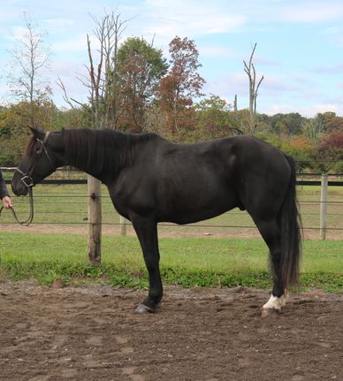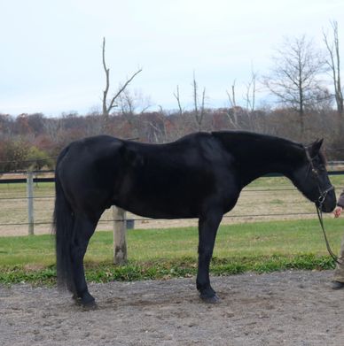 11 yo Friesian x Morgan Gelding. Mystic stands at 16 hands with a stocky build. He is barefoot and sound with no known injuries or maintenance. He is up to date. Mystic is turned out in a mixed herd. He doesn’t crib, bite, kick, or weave.